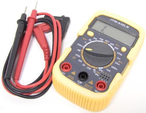 PRODUCT DESCRIPTIONS:Digital multimeter to check DCV (DC voltage), stroke (AC voltage), DCA (DC current), ACA (AC current), resistance, capacitor, transistor hFE, frequency, continuity test and diode test. It has an easy to read LCD display, switch and terminal connections. See attached document for details on the technical characteristics of the digital multimeter.