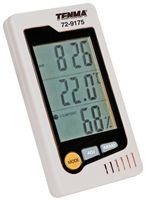 'Further Manufacturer's Details (for this range)...Model: 72-9175 Convenient test quality thermometer, hygrometer & clock Large triple display Includes desk stand & wall mount Displays 12/24h time & date Alarm function Max/Min temperature & relative humidity Requires 1x AAA battery Thermometer: 0 °C to 50°C Hygrometer: 10% to 90%RH