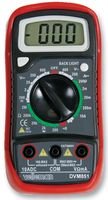 'Further Manufacturer's Details (for this range)...A basic low cost digital multimeter 31/2 Digit, 1999 count, 45mm x 18mm LCD with backlit display AC/DC Voltage up to 600V DC Current up to 10A Resistance up to 2MΩ Basic Accuracy: ±(0.5% of rdg + 2 digits) Automatic polarity indication Diode, transistor & continuity test with buzzer Data hold function Low battery indication Manual ranging Over load protection CAT. II 600V Supplied with test leads, protective holster, 9V battery & user manual