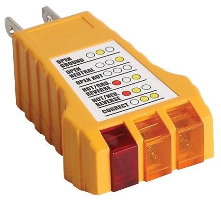 PRODUCT DESCRIPTIONS:Extremely easy to use receptacle tester for use on 110to125VAC circuits. Just plug in to outlet and watch light patterns to detect faulty wiring in 3-wire receptacles. Shows open ground, open neutral, open hot, reverse and correct wiring.