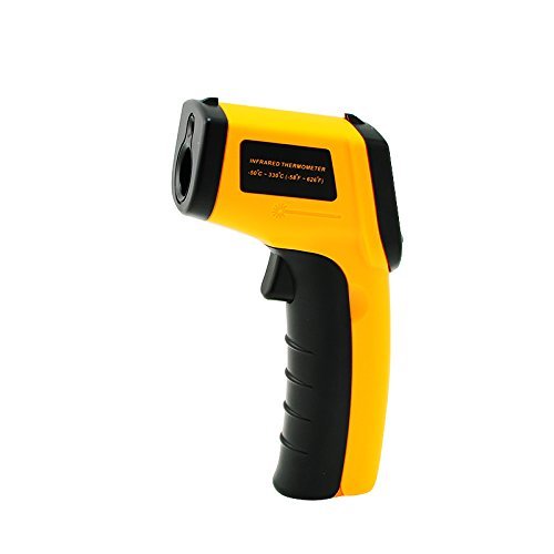 PRODUCT DESCRIPTIONS:Specification: Temperature range: -50 to 380℃ (-58 to 716°F). Accuracy: ±1.5℃/ or ± 1.5%. Resolution: 0.1℃ or 0.1°F Repeatability:1% of reading or 1℃ Response time:500 mSec,95% response Spectral response:8-14 um Emissivity:0.95 Preset Distance to Spot Size : 12:1 Operating Humidity:10~90%RH no condensing,up to 30℃(86°F) Operating Temperature:0~40℃(32~104°F) Storage Temperature:-20~60℃(-4~140°F) Power:1.5v AAA×2(Not Include) Typical battery life: Laser off:12hrs We use this unit to measure the temperature of: Hot water pipes,Hot engine parts,Cooking surfaces,Hot tubes & insulation, Electrical connection, Ballasts in electric lights,Electric Motors & Bearings, Wine Coolers & hot asphalt,Hot & cold food products,Heating & air conditioning etc Package Include: 1 ×Infrared Thermometer 1 ×User Manual